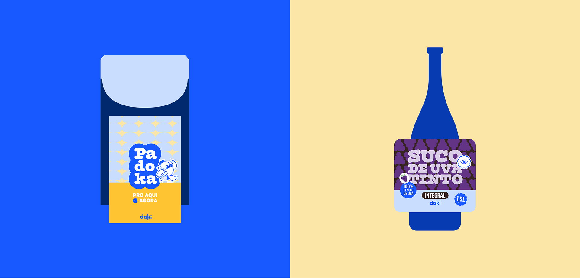 [EN] In early 2024, Estúdio Drama developed new packaging guidelines for Daki’s Padoka line. We created a scalable, easy-to-apply system that distinguishes products through shape-based patterns, color categories, and familiar illustrated characters. All elements were designed like stickers, keeping Daki’s playful tone while ensuring visual consistency. We used the Olivita typeface by Brazilian foundry Plau Design to highlight the brand’s local flavor. The result was a complete guidelines manual for future use.
